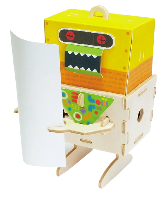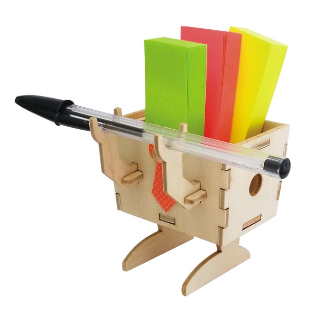 小物入れになっているロボットです。手の位置を変える事で、メモスタンドになったり、ペンホルダーになったりします。